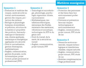 Les enseignements sont assurés par l’équipe pédagogique du département HSE accompagnée de personnalités extérieures assurant des missions HSE dans leurs entreprises. Cette contribution permet de fournir une dimension professionnelle à la formation ; objectif conforté par la mise en œuvre de séquences de projets et d’un stage effectués en entreprise.